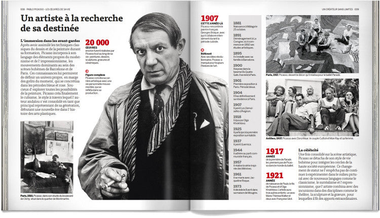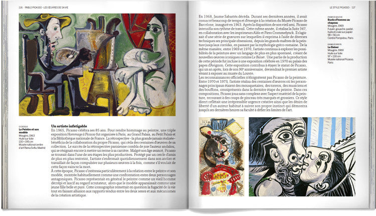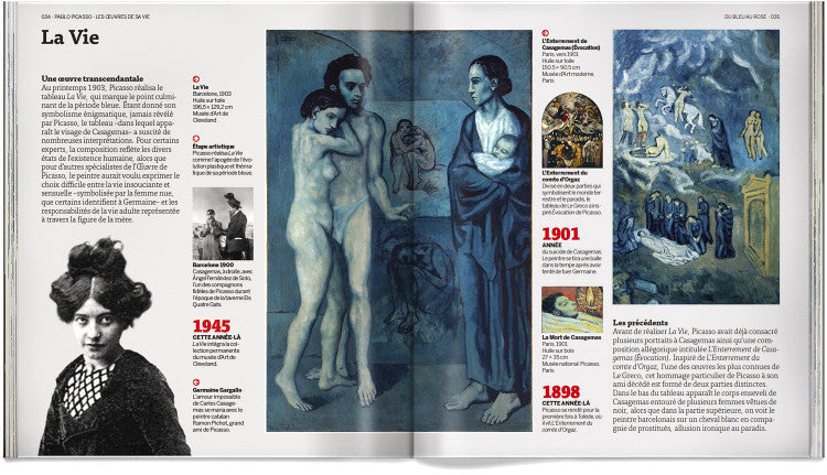 Das Buch befasst sich ausführlich mit den Werken, die Picasso im Laufe seines Lebens geschaffen hat, und erläutert jede seiner Schaffensperioden. Beim Durchblättern erfahren wir mehr über den Hintergrund der wichtigsten Bilder Picassos und entdecken, welche Ereignisse die stilistische Entwicklung des Malers beeinflusst haben, der als eine der wichtigsten Referenzen der zeitgenössischen Kunst gilt.