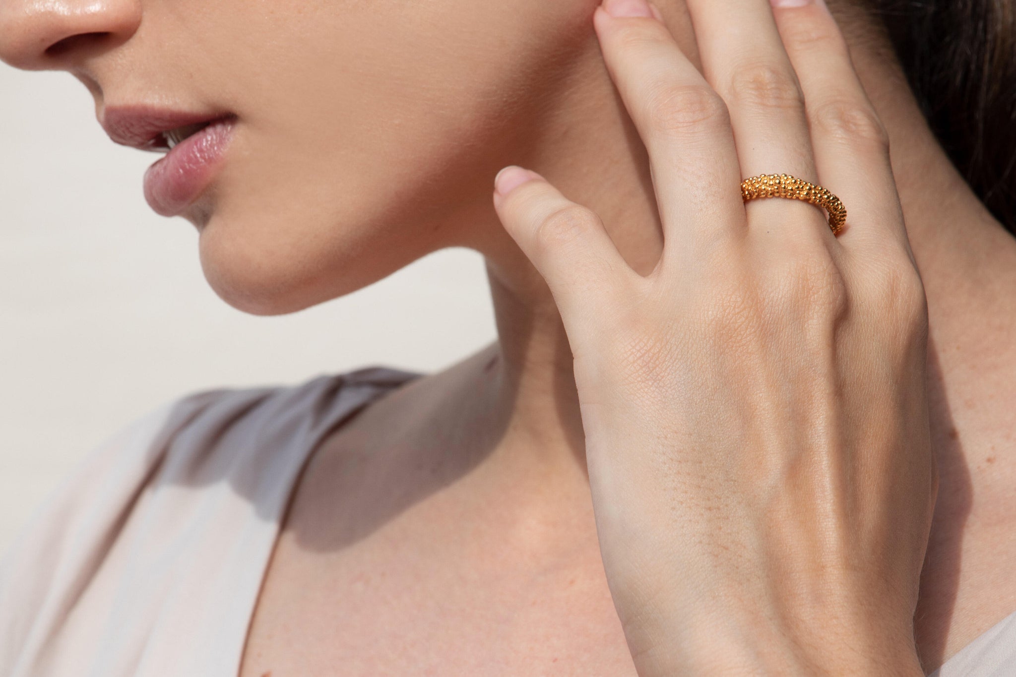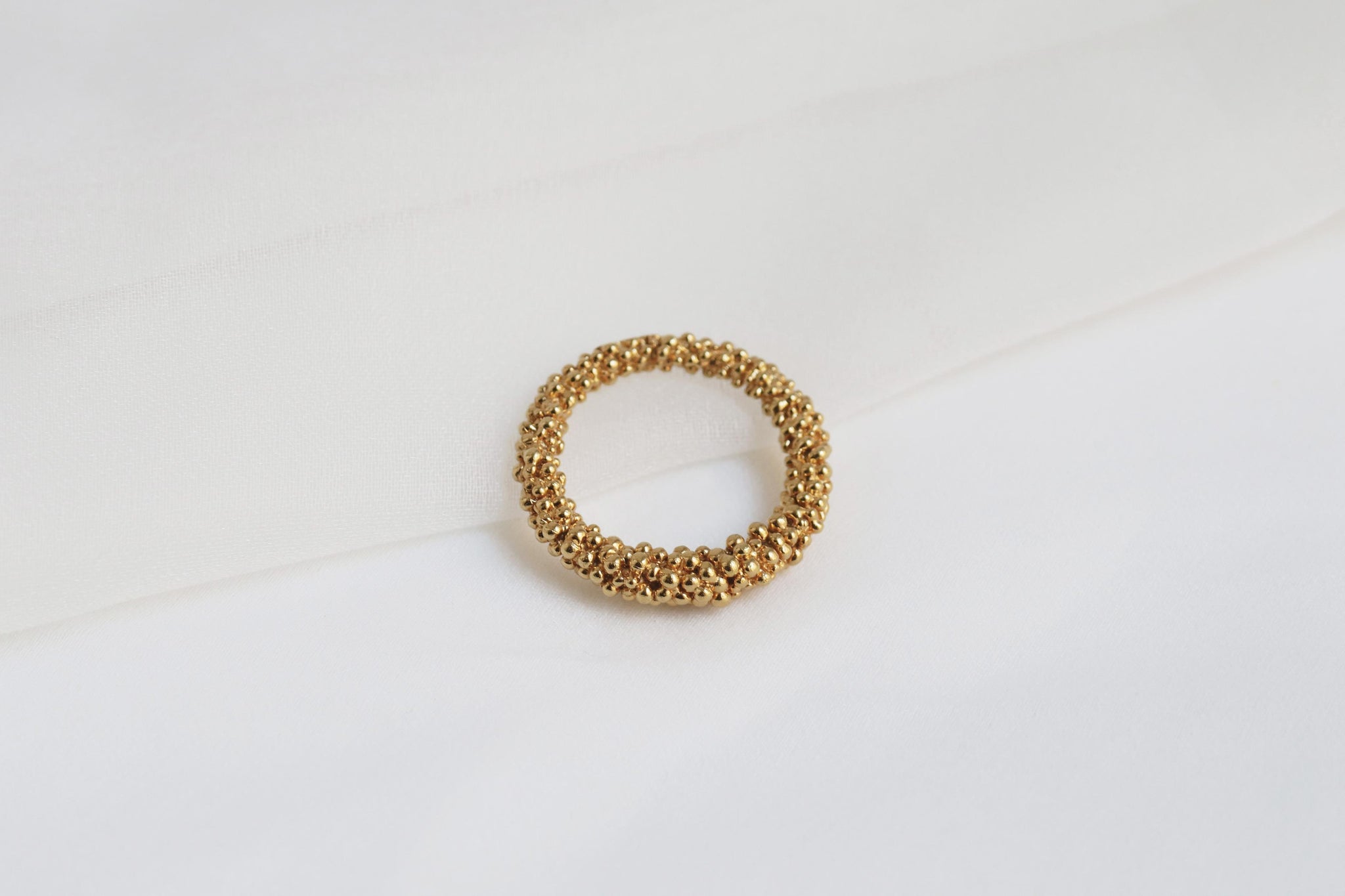 24 K vergoldeter Metallring aus kleinen Kugeln mit glänzender Oberfläche.