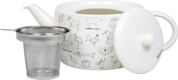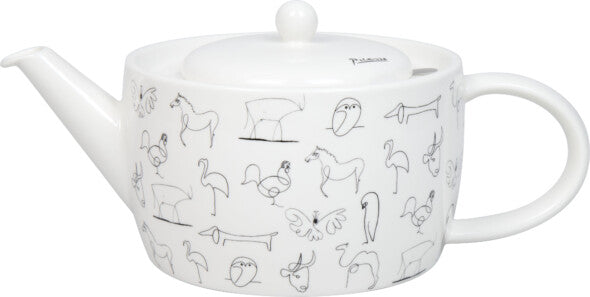 Picassos beeindruckende Werke begeistern noch immer viele Menschen auf der ganzen Welt. Im Laufe seines Lebens schuf er nicht nur Gemälde, sondern auch eine Vielzahl an Zeichnungen. Häufig fing der Künstler seine Motive mit nur wenigen, ausdrucksstarken Linien ein. So auch seine Tierzeichnungen. Einige dieser Tiere wie Eule, Hund, Pferd und Stier zieren die schlichten und Bone China Teekanne von Könitz. Die Vielfalt an Motiven lädt bei jedem Teegenuss zum Betrachten ein und lassen die Herzen von Picasso-Liebhabern mit Sicherheit höherschlagen.