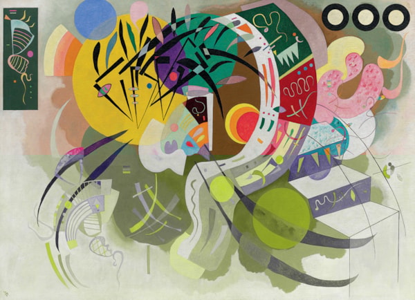 - Dieses Gemälde wurde 1936 vom Maler Wassily Kandinsky fertiggestellt, der als Vater der abstrakten Kunst gilt. Er gab eine Karriere in der Rechts- und Wirtschaftswissenschaft auf, um seiner Leidenschaft zu folgen.