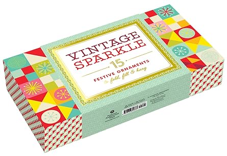 Dekorieren Sie Ihren Kaminsims, Weihnachtsbaum, Tisch oder sogar Kronleuchter mit diesen fünfzehn schimmernden Ornamenten. Vintage Sparkle verleiht der handgefertigten Ästhetik traditioneller Papier-Weihnachtsornamente mit kräftigen Farben, geometrischen Mustern und einem Hauch von Gold einen modernen Touch. Verwenden Sie sie als ganzjährige Dekoration oder füllen Sie diese faltbaren Schachteln mit Kleinigkeiten, um einzigartige Partygeschenke zu kreieren. Flach verpackt in einer glänzenden Aufbewahrungsbox mit Scharnier und goldener Schnur zum Aufhängen.